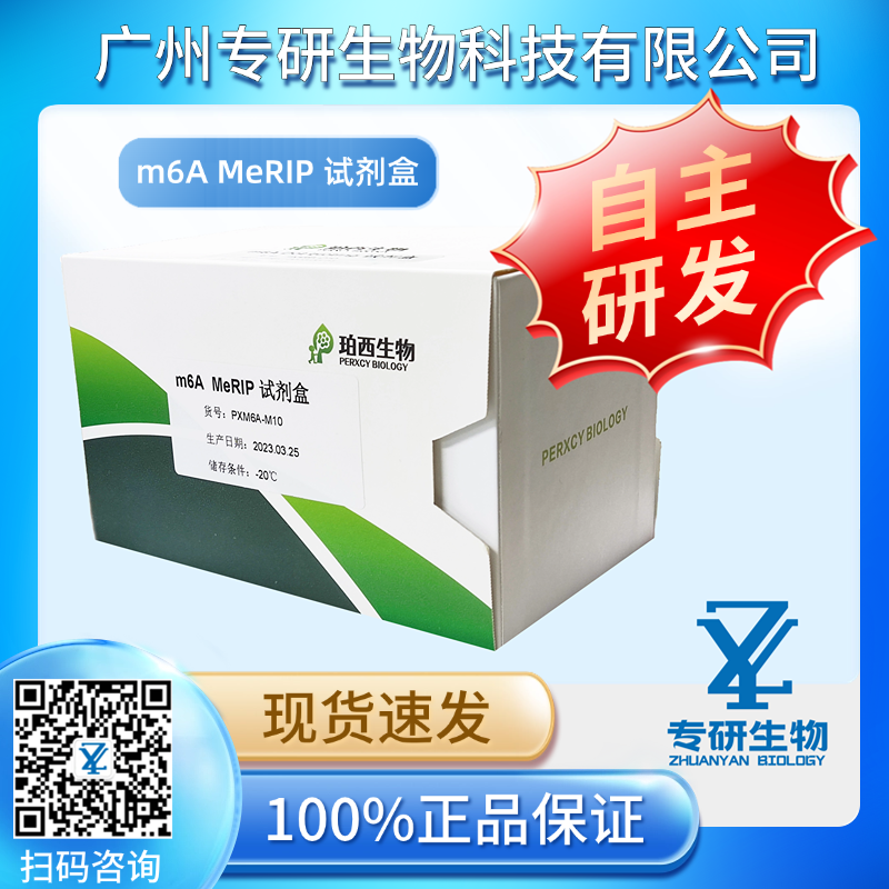 m6A MeRIP分析试剂盒使用RNA甲基化免疫沉淀的方法来识别广阔转录组中的m6A。在RNA甲基化免疫沉淀分析中,采用化学的方法使RNA片段化到100左右的核苷酸或更小的片段采用单克隆抗体使得有吸附力的磁珠用免疫沉淀反应将其指向m6A。在免疫沉淀反应之后,分离的 RNA片段采用qRT-PCR或RNA-测序(RNA-seq)来进行检测。