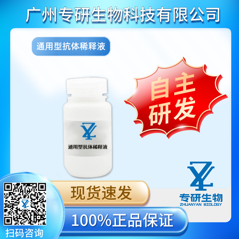 产品说明:本抗体稀释液适合普通抗体的稀释,可以防止抗体效价下降,减少抗体非特异性吸附。使用方法(仅供参考):按照抗体推荐效价(或个人优化条件),将适量抗体加入抗体稀释液即可。例如,效价为1:100 时,可将 10 μL 抗体加入到 1 mL 抗体稀释液中,充分混匀后即可使用。抗体最好现用现稀释,稀释后的抗体 2-8℃可以短期保存,但抗体的效价会随时间而降低。